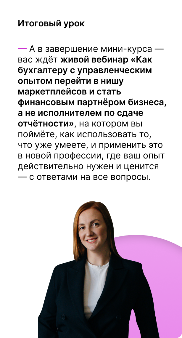 если хотите разобраться, кто такой бухгалтер маркетплейсов и чем он отличается от классического, понять логику учёта и документооборота, узнать, где искать первых клиентов, и получить пошаговый маршрут, как безопасно войти в профессию и начать зарабатывать.
